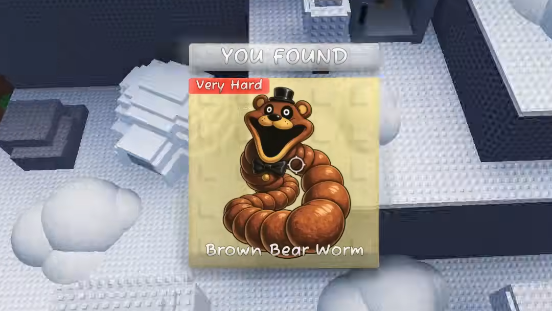 Brown Bear Worm (styled after Freddy Fazbear) requires a Fazbear coin found elsewhere on the map. Insert the coin into a box in a specific area to unlock Brown Bear Worm. The game references Five Nights at Freddy's but does not include other FNAF characters like Bonnie, Chica, or Montgomery.