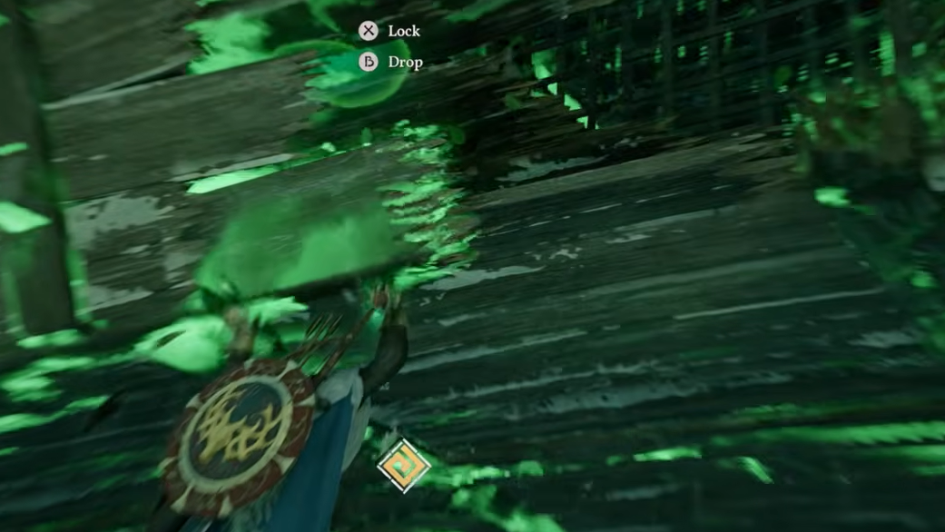 Step 1: Stand near the shipwreck and activate Nature's Grasp (Y + B on controller). This lifts the entire wreck off the ground.