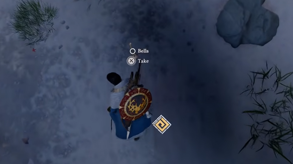 Walk to the southern edge of the yellow-marked search area. The Bells are sitting in the sand along the beach. They can be slightly hard to spot because they blend into the ground, so move slowly and watch for the interaction prompt. Like the Talisman, no special abilities are required — just pick them up.