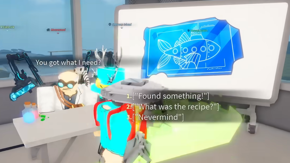 - Triggering Crookspine’s research by bringing him a Gleebous mutation fish