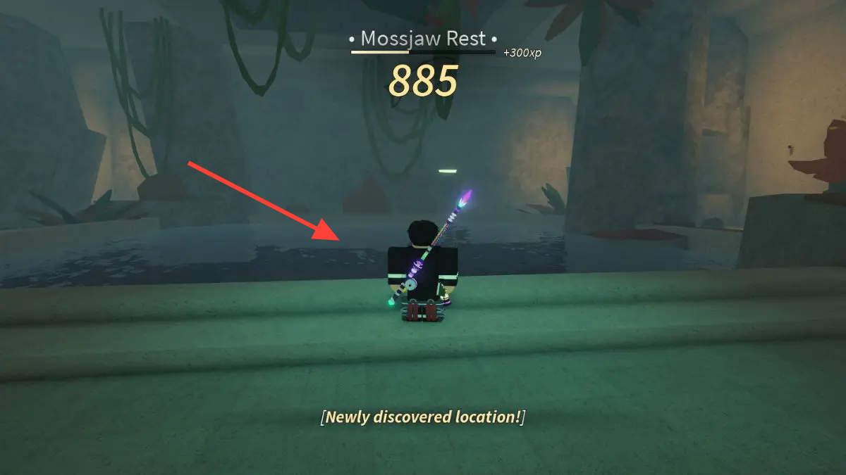 - Enter the newly opened chamber to access the large pool where Mossjaw spawns during the Hunt.