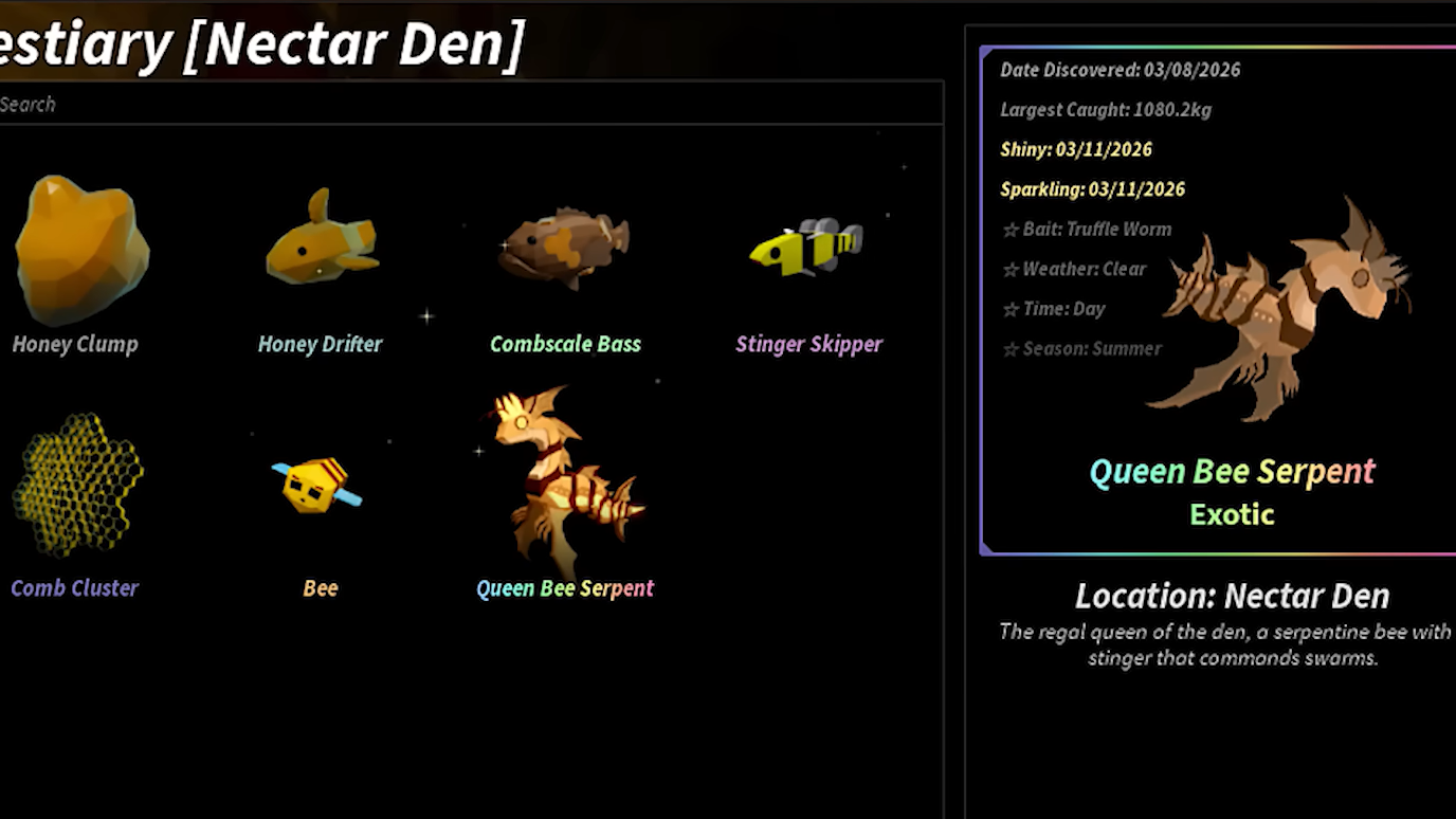 The Jungle Expansion update for Fisch introduced the nectar den, a new area inside the Lost Jungle that comes with its own event-based money-making strategy. The core idea is straightforward: trigger the nectar bloom event, then catch as many queen bee serpents as possible before the event timer runs out. It works, but the extra preparation steps and gear requirements make it a harder sell compared to established alternatives.