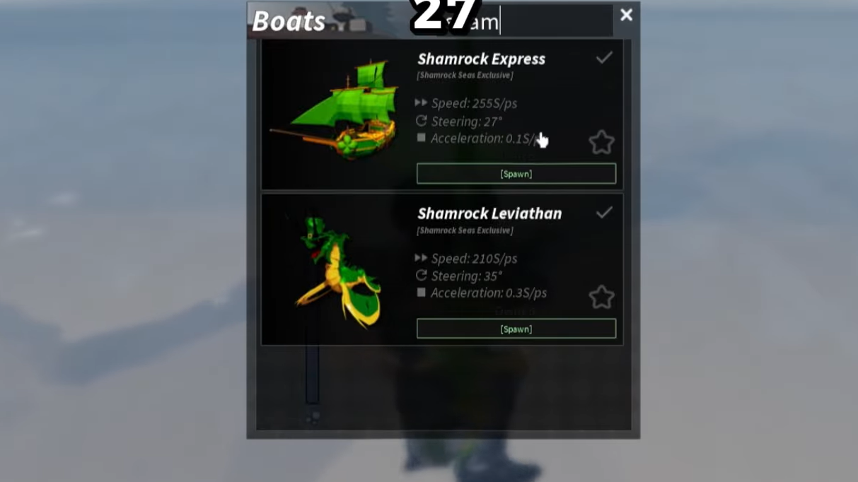 The Shamrock Leviathan boat you receive has 210 speed, 35-degree steering, and 0.3 acceleration. It features an animated swimming motion on the water, making it one of the more visually distinctive boats in the game.