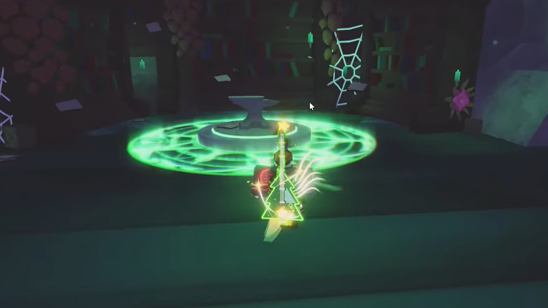 Step 2: Walk to the Crafting anvil at the far end of the Archives room. Approach it and hold the E key to open the rod crafting menu.