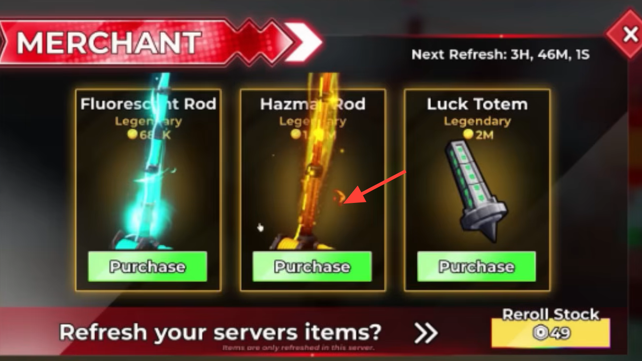 | Mid → Late | Hazmat Rod | Buy from Traveling Merchant | Top Legendary, bridges into Mythic/quest grind |