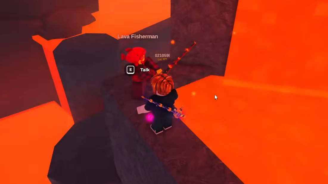 Step 3: Talk to the Lava Fisherman; he awards the Lava Rod immediately.
