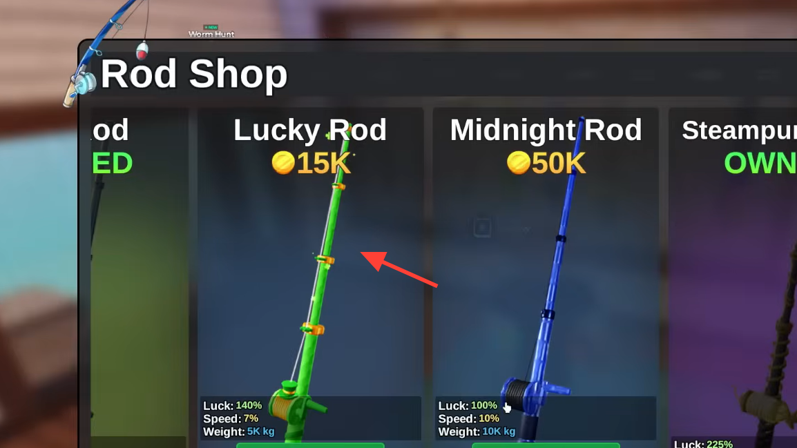 The Lucky Rod (often called “Lucky” in‑game) is the ideal first paid upgrade from early gear. It is sold in the Rod Shop on Fisherman Island for around 10,000–15,000 coins, depending on the current balance patch.