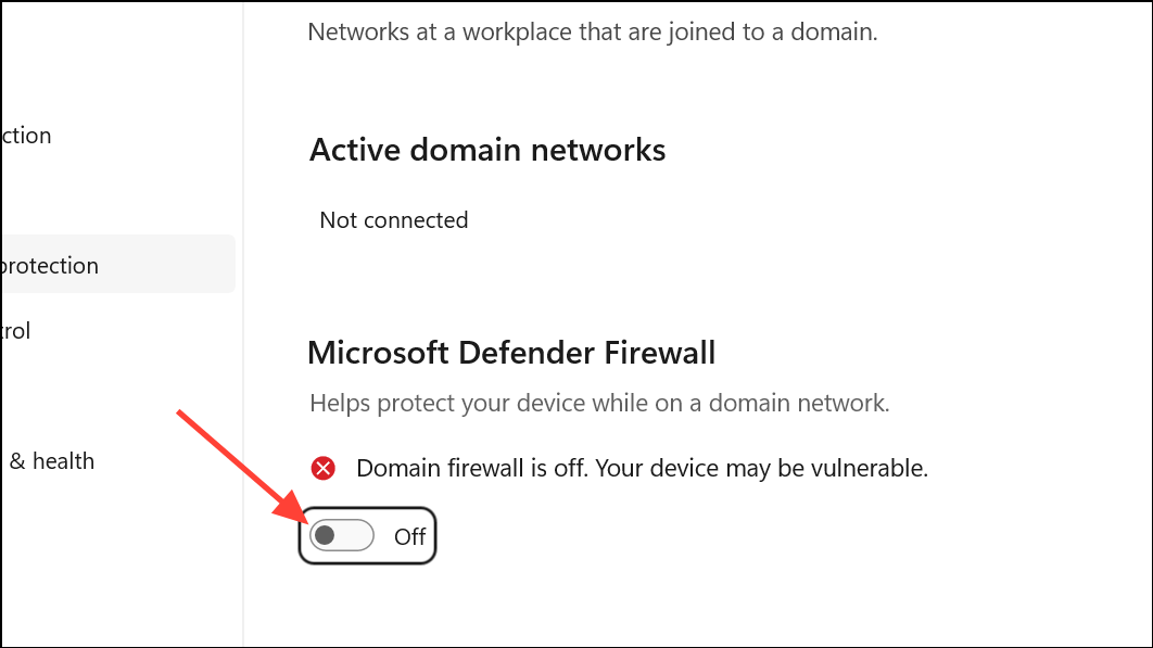 Step 2: Click on each network profile—Domain network, Private network, and Public network—and turn off the firewall for each. Firewalls can sometimes block the activation process from communicating with Microsoft’s servers.