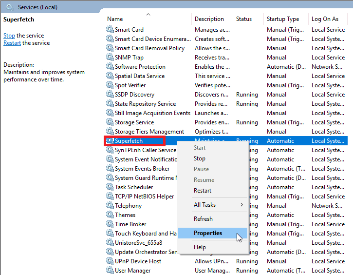 Superfetch is a Windows service that helps the system pre-load apps into the Random Access Memory to reduce the load on the hard disk. Unfortunately, it sometimes backfires, and negatively affects the hard drive performance instead of helping it.