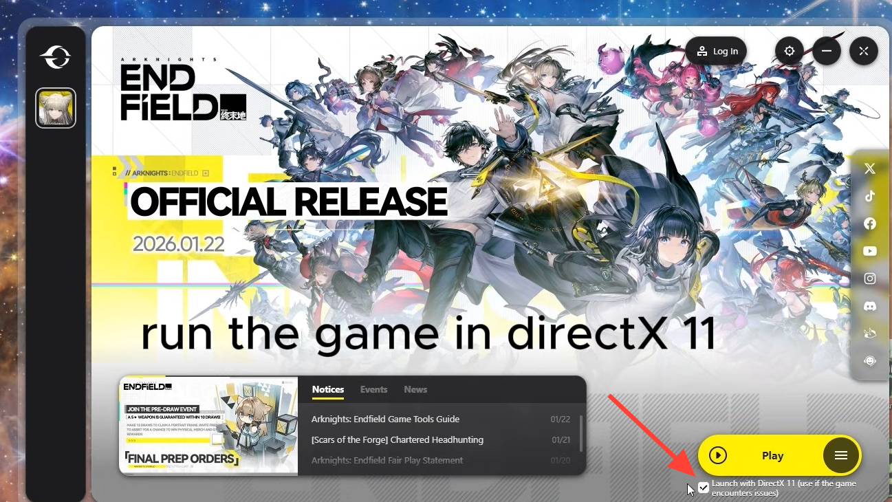 Step 3: After the reboot, avoid opening heavy third-party overlays or filter tools. Launch the GRYPHLINE client, then start Endfield, preferably with the “run as administrator” and DX11 settings already configured.