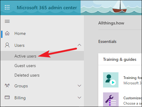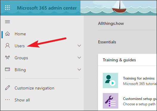 If you do have admin access, go to Microsoft 365 admin center and login with your admin account. Then, click on the option ‘Users’ on the navigation menu on the left.