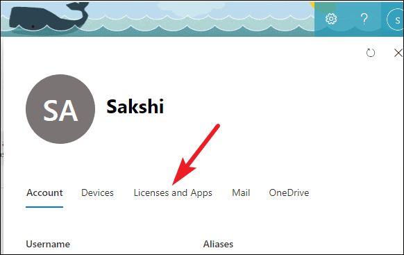 A window will pop-up from the right side of the screen. Go to the ‘Licenses and Apps’ tab.