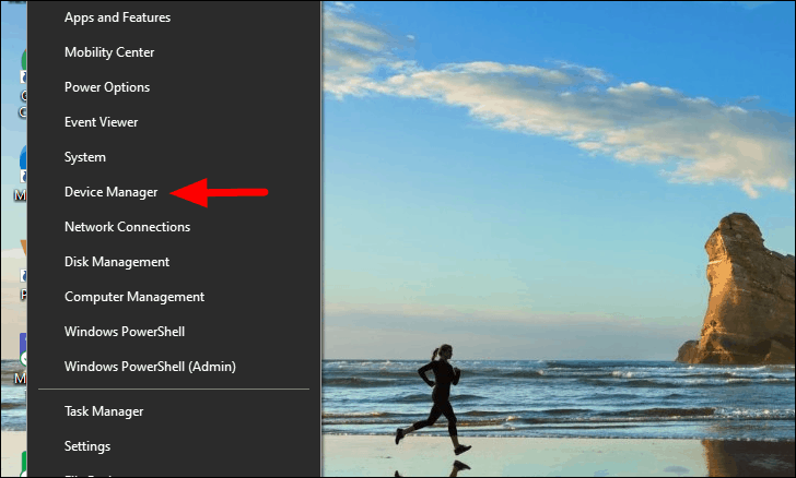 To uninstall the drivers, right-click on the ‘Start’ icon at the bottom-left corner of the screen.
