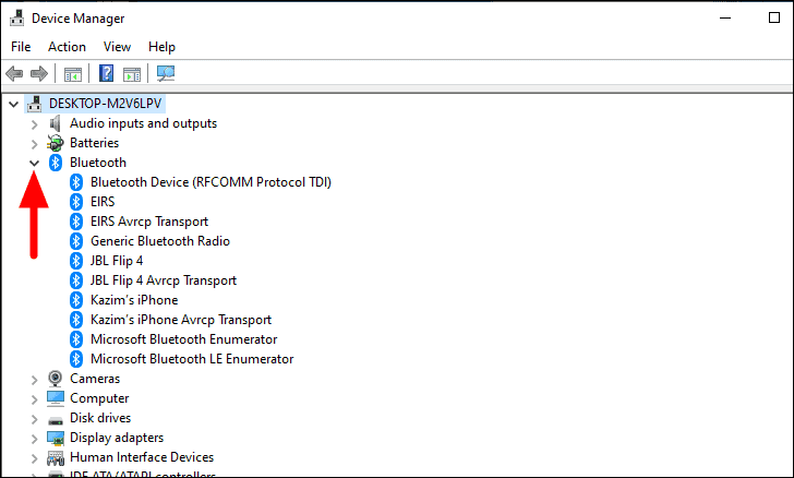You will now find various drivers listed on the device manager window. Click on the arrow before ‘Bluetooth’ to expand the various drivers under it.