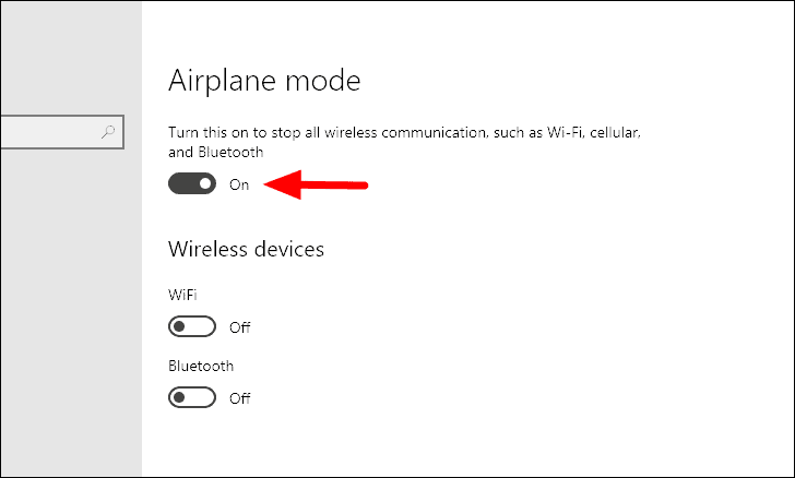 Next, click on the toggle under ‘Airplane mode’ at the right to enable it.