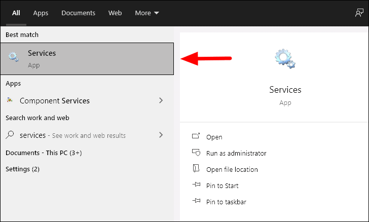 To reenable, search for ‘Services’ in the ‘Search Menu’ and then click on the result to launch the app.