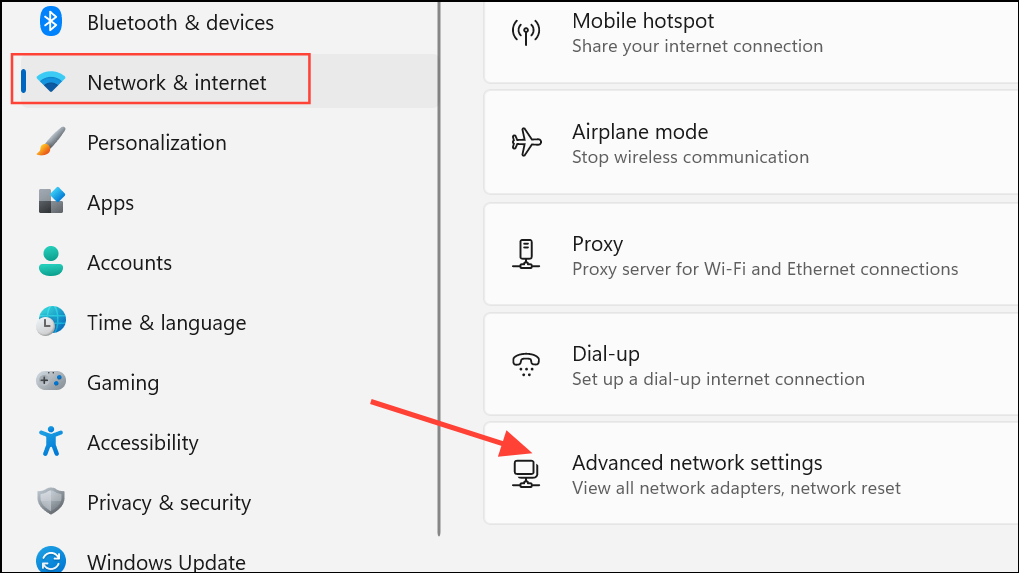 Step 1: Open Settings and go to Network & Internet. Scroll down and select Advanced network settings.