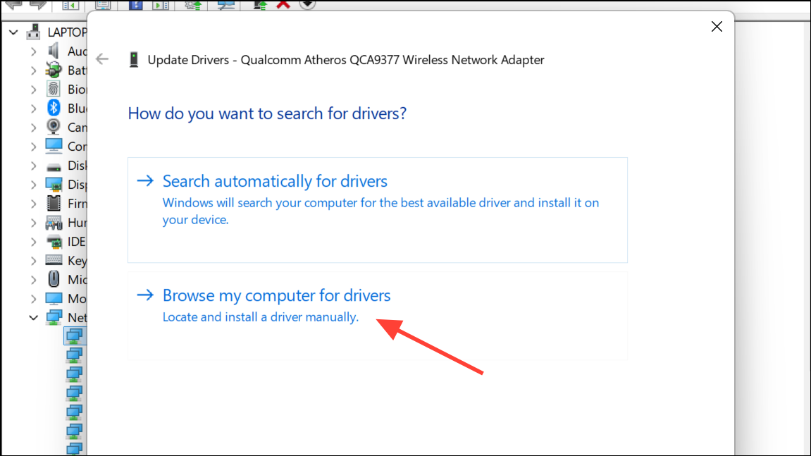 Step 2: In Safe Mode, open Device Manager, uninstall the problematic network adapter, and install the correct driver manually by right-clicking the adapter and selecting Update driver > Browse my computer for drivers. Point to the folder containing your downloaded driver files.