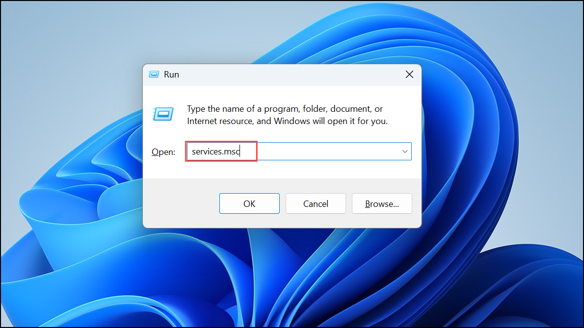 Step 1: Press Windows + R to open the Run dialog. Type services.msc and press Enter.