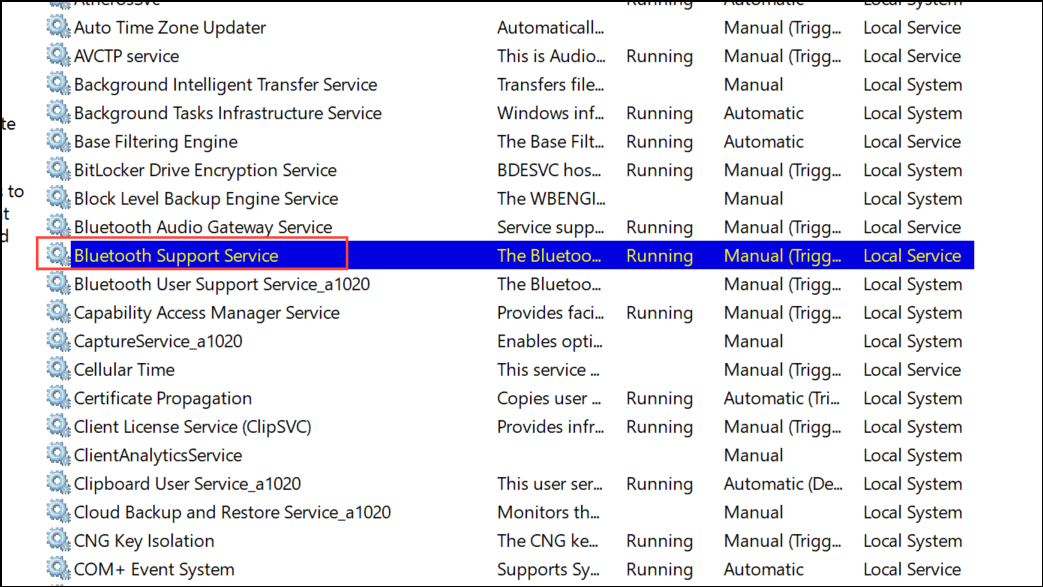 The Bluetooth Support Service manages the core Bluetooth functions in Windows 11. If this service is set to manual or is stopped, Bluetooth devices may fail to connect or even appear in settings. Setting it to automatic ensures the service runs at startup, restoring Bluetooth functionality for many users.