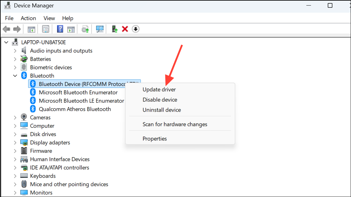 Step 2: Expand the Bluetooth section. Right-click your Bluetooth adapter (often labeled as “Intel Wireless Bluetooth,” “Realtek Bluetooth,” or similar) and choose Update driver.
