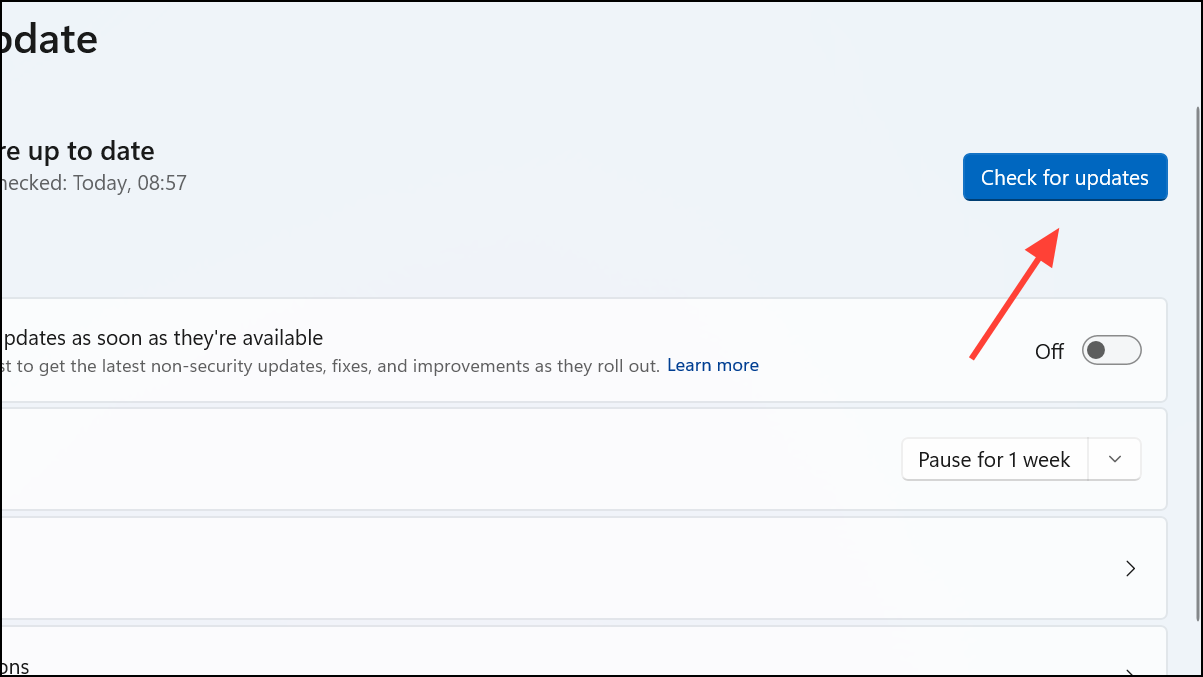 Step 1: Open Settings > Windows Update and click Check for updates. Install any available updates and restart your PC.