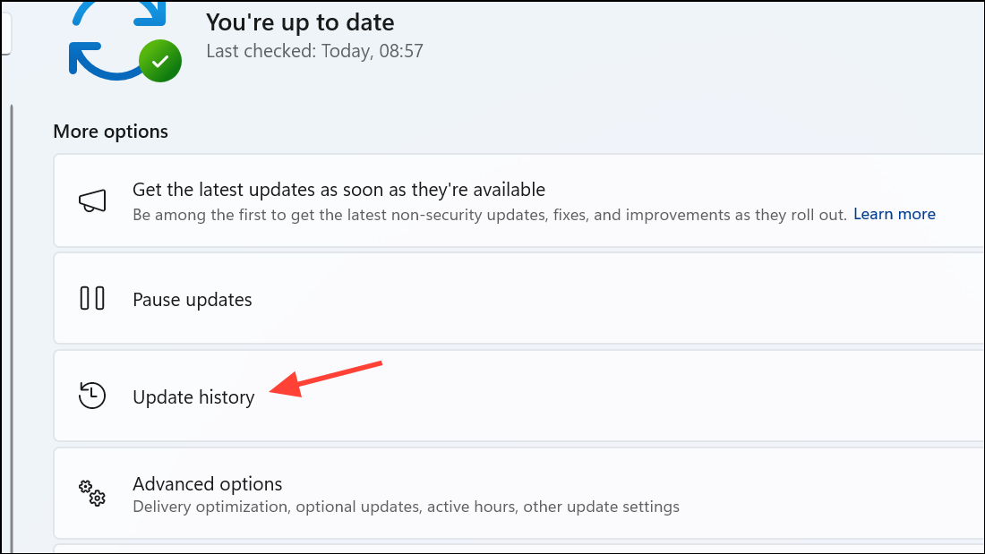 Step 1: Open Settings > Windows Update > Update history.
