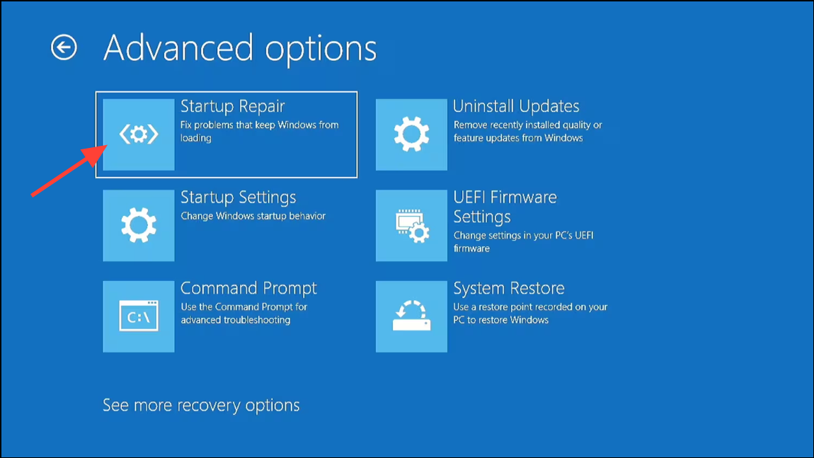 Step 2: Select Troubleshoot > Advanced options > Startup Repair.