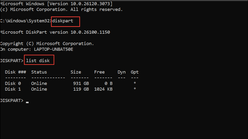 Step 2: Enter the following commands one by one, pressing Enter after each: