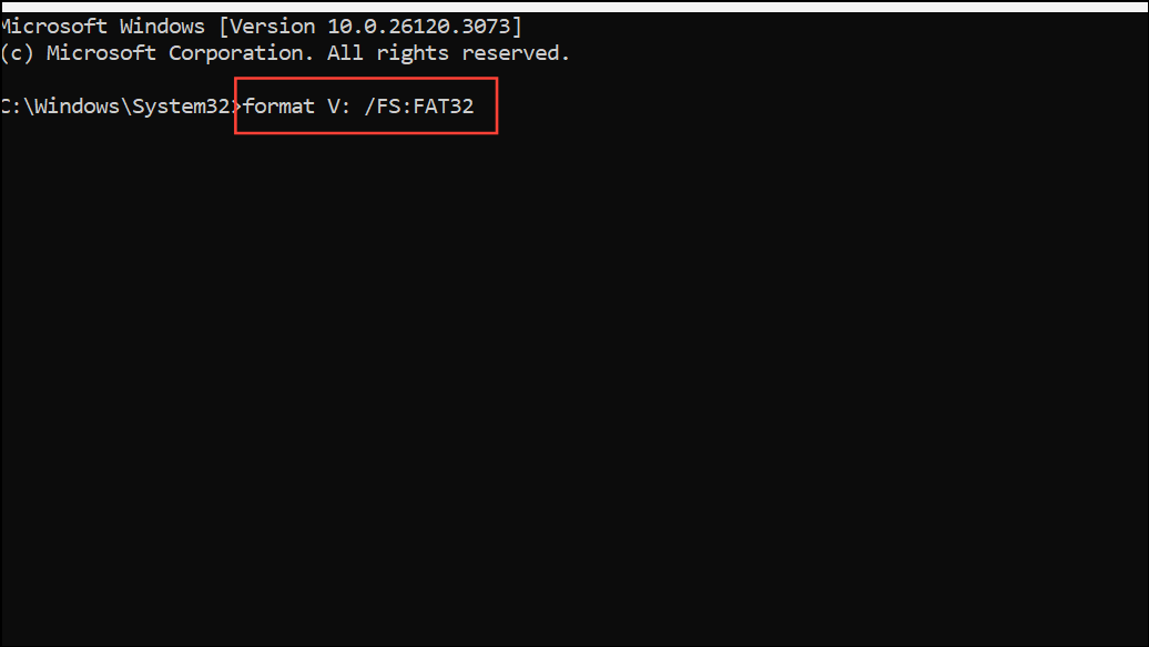 Step 5: Format the EFI partition to ensure it is clean and ready for new boot files. Type: