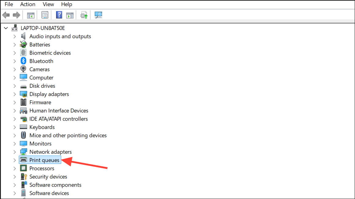 Step 1: Open Device Manager and locate your Canon printer under Print queues.