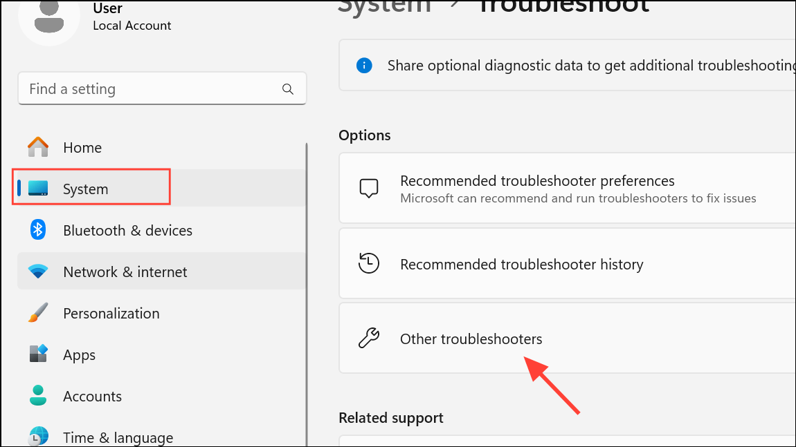 Step 2: Go to Update & Security, then select Troubleshoot and choose Other troubleshooters