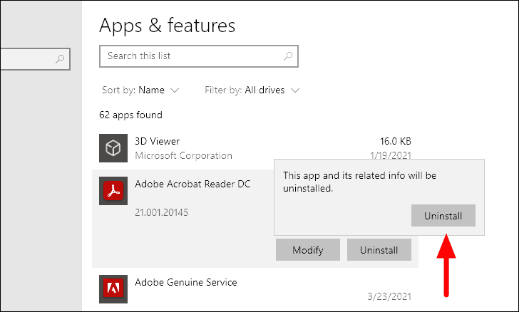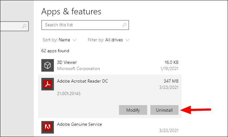 You will now find all the apps on your system listed on the screen. Click on the app that you want to uninstall and select the ‘Uninstall’ option that appears.