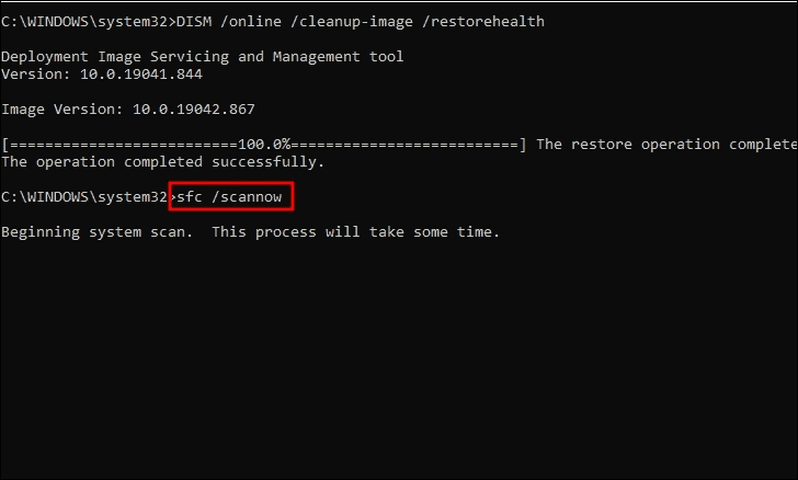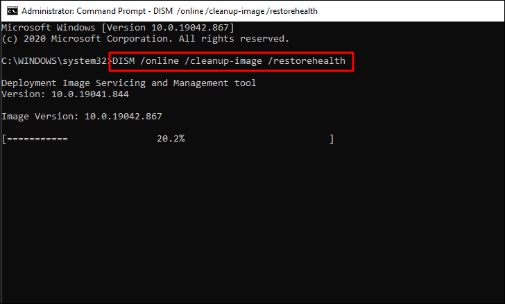 Before we run an SFC scan, it’s recommended to run the Deployment Image Servicing and Management(DISM) tool. Running the DISM beforehand ensures that the corrupt file in the Windows system image is fixed for SFC to be effective.