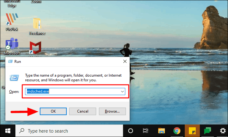To run Windows Memory Diagnostic Tool, press WINDOWS + R to open the run command, enter ‘mdsched.exe’ in the textbox and then either press ENTER or click on ‘OK’ at the bottom.