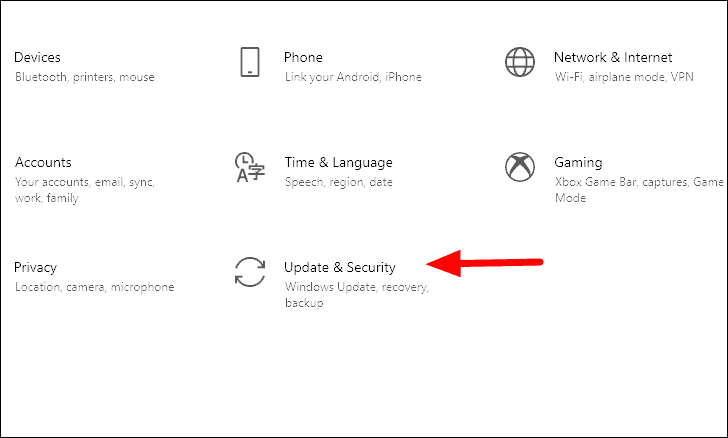 To check for updates, press WINDOWS + I to open system ‘Settings’ and then click on ‘Updates & Security’, the last option in the list.