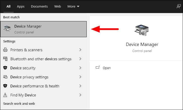 To update the drivers, search for ‘Device Manager’ in the Start Menu and then open it.
