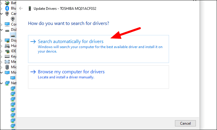 A new ‘Update Drivers’ window will open up where you have the option to either let Windows search for the best available drivers or you can manually install a driver that’s already been downloaded on the system. It’s recommended that you select the first option and allow Windows to look for drivers.