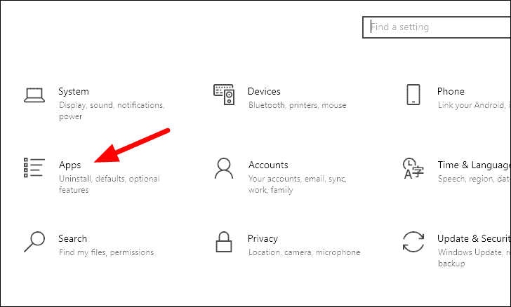 To uninstall an app, press WINDOWS + I to open system ‘Settings’ and then select the ‘Apps’ section from the list on the screen.