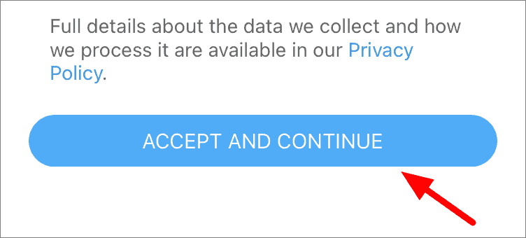 The VPN app will open, now, tap on ‘ACCEPT AND CONTINUE’ at the bottom.
