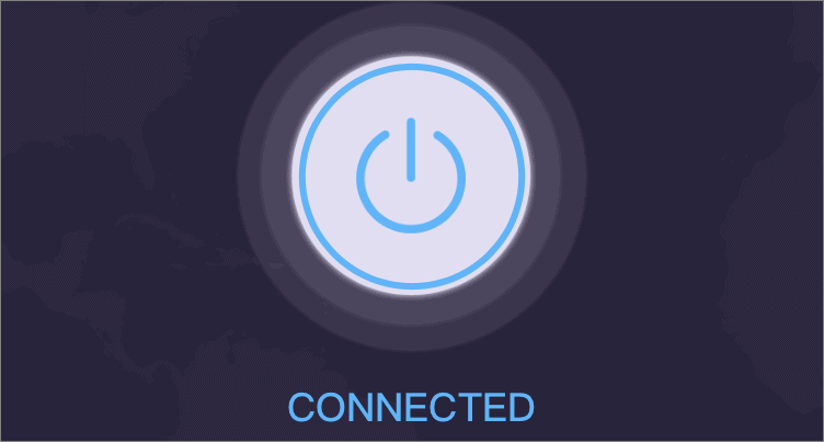After the VPN is configured, the app will display ‘Connected’ under the power sign, and both the sign and text will start to glow.