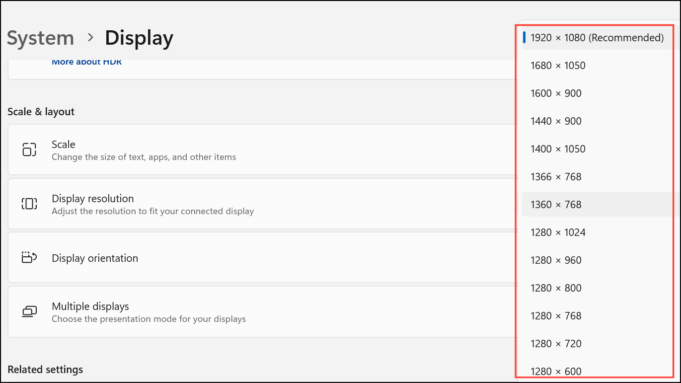 Step 1: In Settings > System > Display, select each monitor and check the Display resolution field. Inconsistent resolutions can create invisible walls, especially if the monitors are different sizes or aspect ratios.