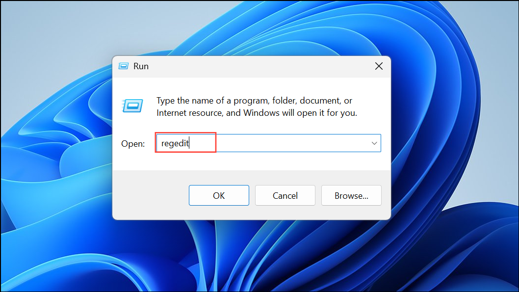 Step 1: Open the Run dialog by pressing Windows + R. Type regedit and press Enter. If prompted by User Account Control, confirm to proceed.