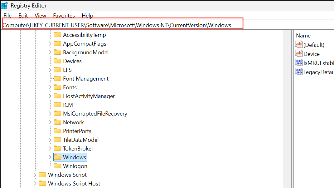 HKEY_CURRENT_USER\SOFTWARE\Microsoft\Windows NT\CurrentVersion\Windows