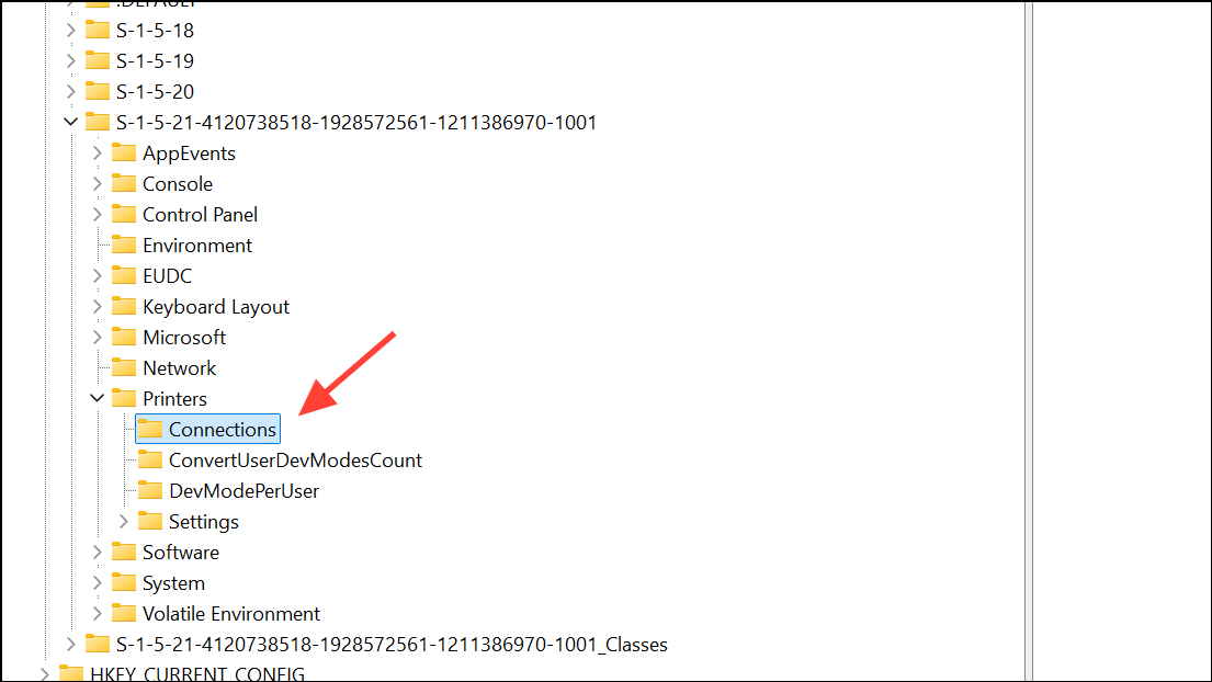 HKEY_USERS\[Your_SID]\Printers\Connections