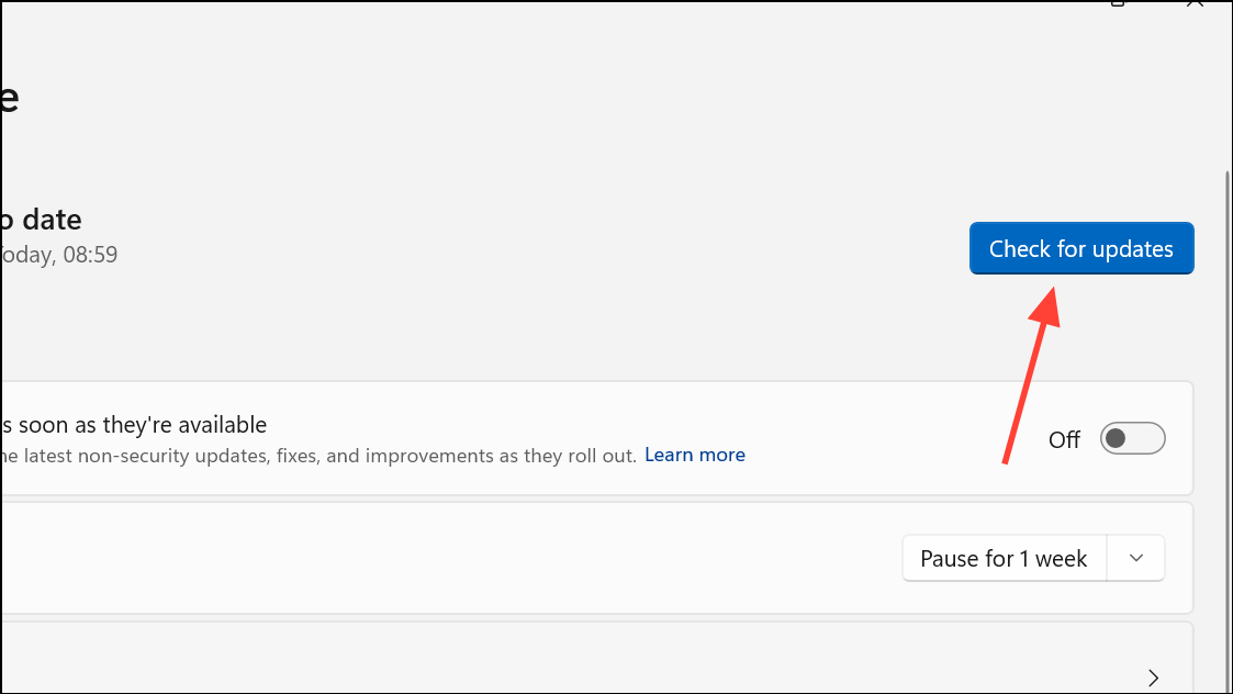 Step 2: Click Check for updates and install any available updates. Keeping Windows up to date addresses known bugs that might affect printer behavior.