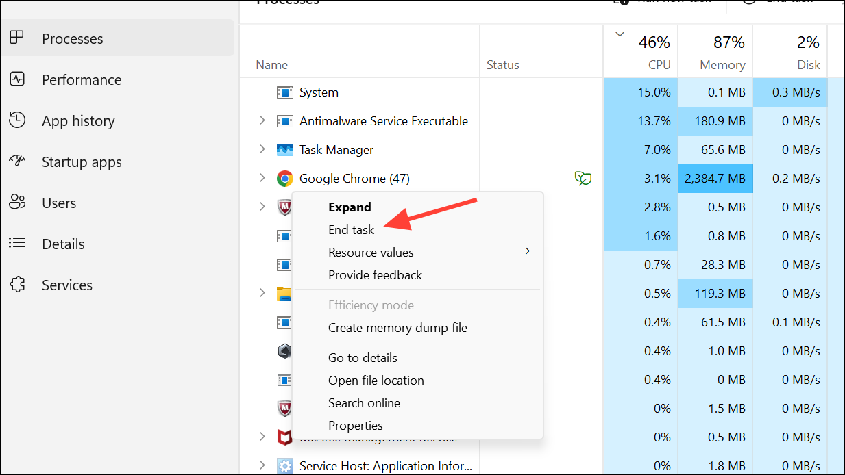 Step 2: End the Windows Explorer process via Task Manager (Ctrl+Shift+Esc), right-click Windows Explorer, then select End task.