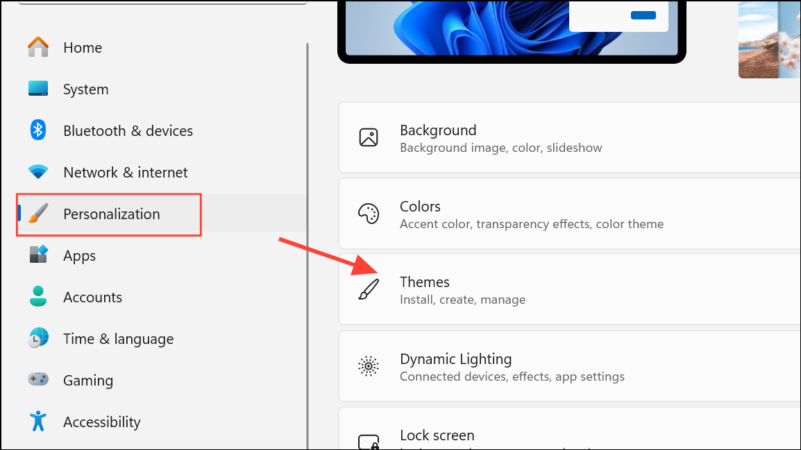 Step 3: In Settings > Personalization > Themes.