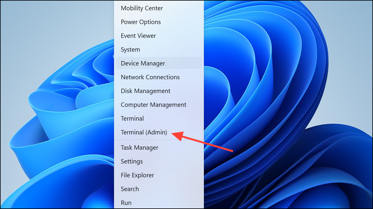 Step 1: Right-click the Start button and select Windows Terminal (Admin) or Command Prompt (Admin).