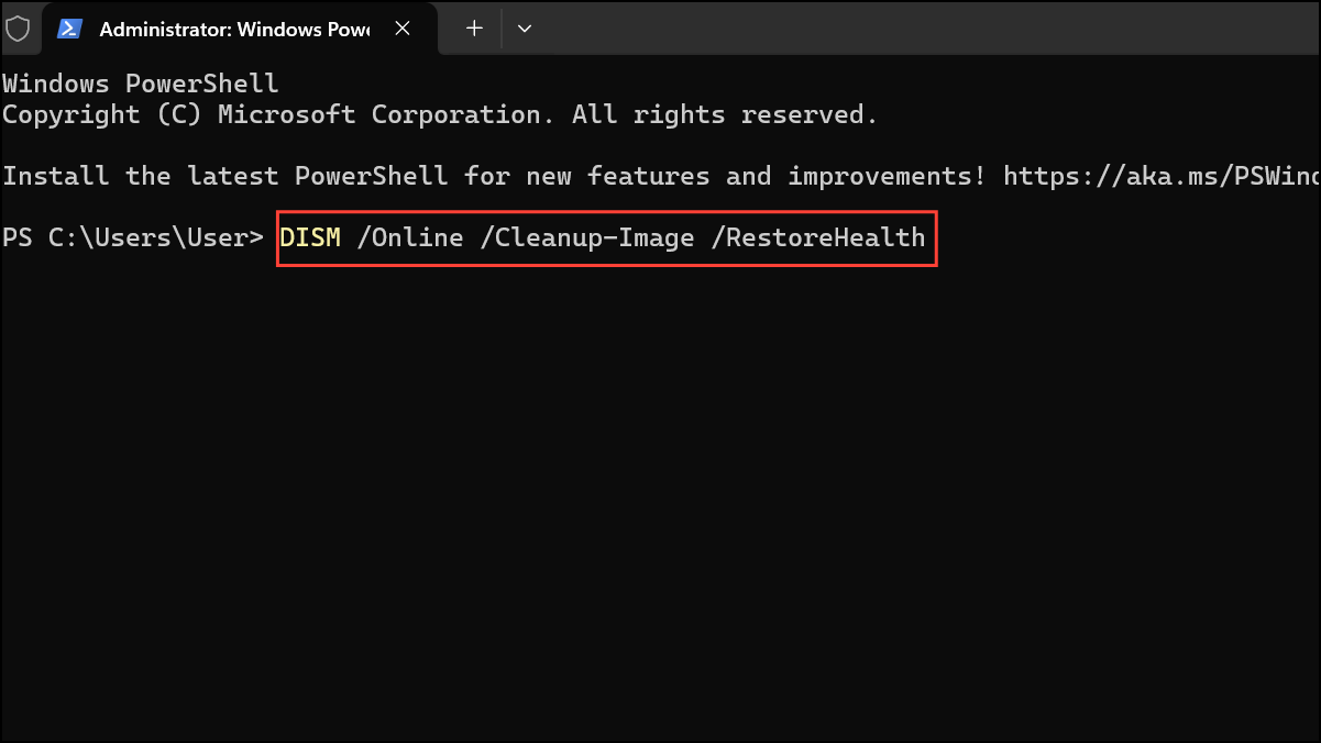 DISM /Online /Cleanup-Image /RestoreHealth